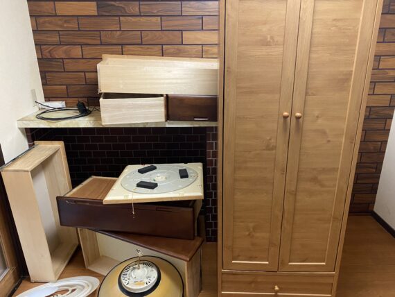 引っ越しになり、不要になった家具や照明などのご依頼。 袋に入る細かい物はお客様自身で処分されましたがタンス、家電など階段で卸せず、困っておりました。 弊社ではタンスなど階段で卸せない場合は通常吊り作業などで卸すのですが、吊り下げ代金が発生する為、 お客様のご負担をちょっとでも少なくする為、部屋の中で解体させて頂いております。 無事全ての物が外に出せて大変喜んで頂けました。